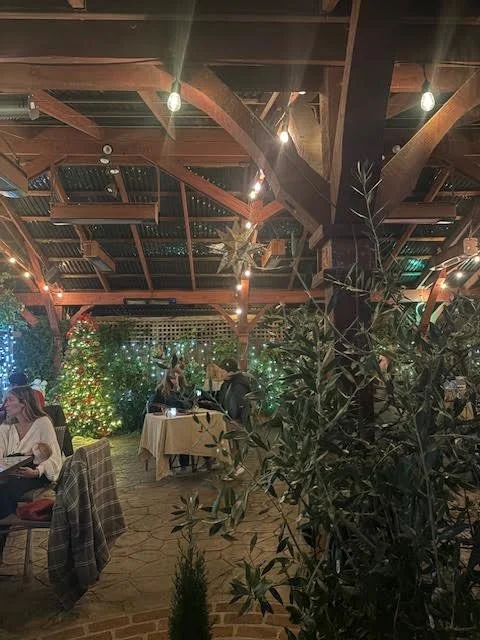 We chose to dine outdoors, where the patio proved enchanting. Heaters ensured comfort even as the evening cooled.The surroundings created an intimate, garden-like atmosphere. Inside, the restaurant is equally cozy—reminiscent of a welcoming house adorned with beautiful artwork and thoughtful touches. Whether inside by the fire or outside beneath the soft glow of lights, the environment is both charming and inviting.