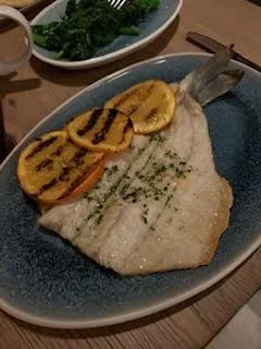 We opted for their three-course dinner for $45, which is an exceptional value given the quality and portion sizes. For the entrée, we enjoyed artichokes in a citrus-lemon sauce, delicately balanced between tart and bright, followed by chicken kebabs served with toasted pita, a cool yogurt dressing, sweet yellow tomatoes, and green peppers. The branzino was perfectly cooked—flaky, tender, and subtly seasoned to let the freshness shine through.