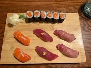During our visit, we began with the edamame, which were perfectly pickled in vinegar and house-made spices—an elegant and refreshing start. We then indulged in the special $29 light sushi set, featuring sushi:yellowtail, tuna, and a roll of our choice: we chose salmon. Each piece was impeccably fresh and so delicious that we savored every bite with appreciation.