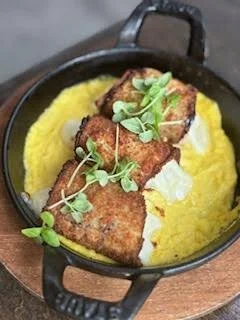 We began with a vibrant green salad, burrata and juicy tomatoes.. Sweet cream added the perfect finish with the sweet corn, and the wrap of eggplant and cheese. It was a tasty trio that teased the palate and paved the way for what came next.